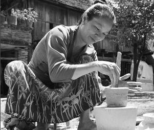 傣族制陶主要工具有转轮、木拍、竹刮、石球等,主要技艺流程包括舂土、筛土、拌沙、渗水、安装转盘、制坯、打坯、干燥、准备烧陶、烧陶等环节。
