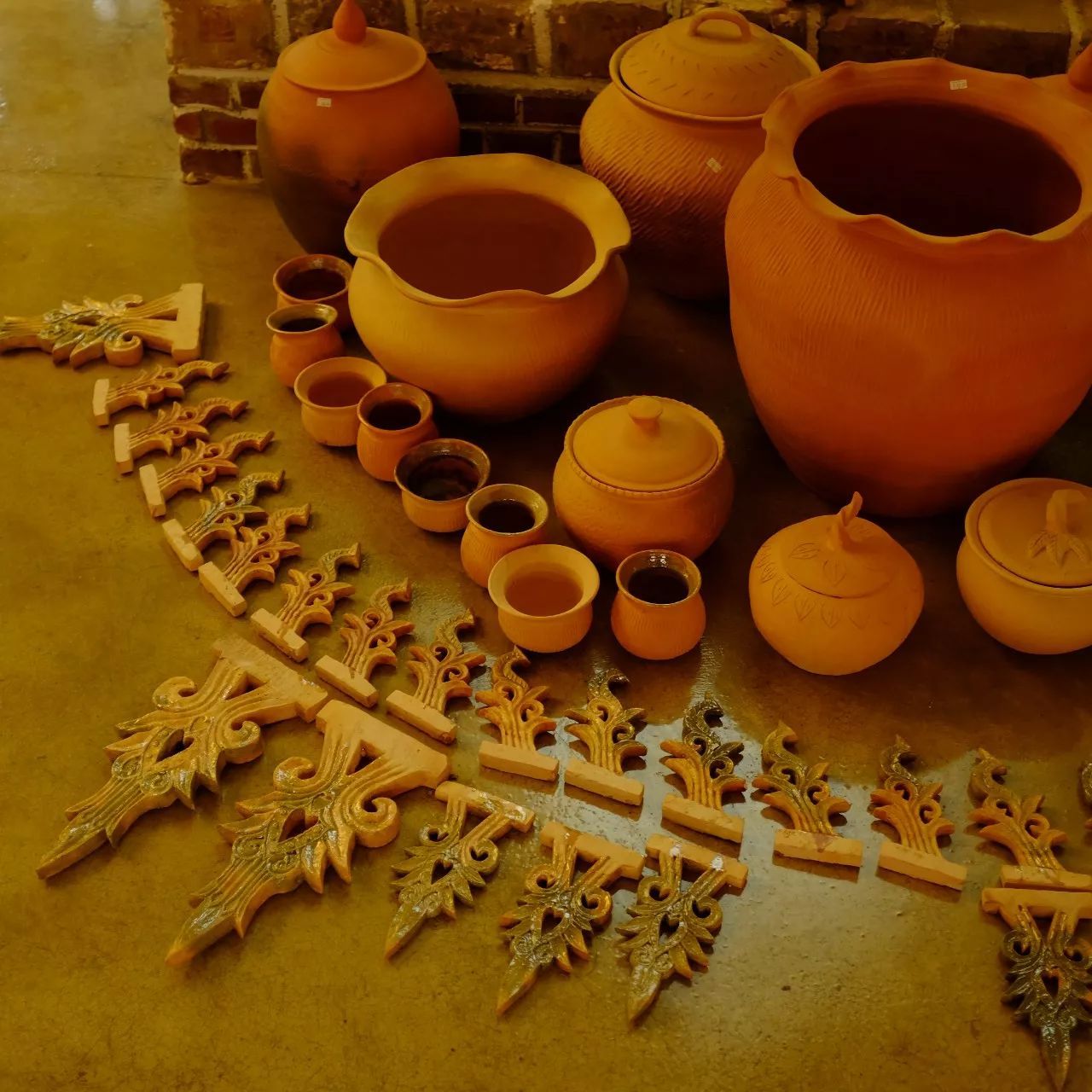 傣族有自己一套完整的生产生活方式,有原始宗教与佛教信仰的交织,这是傣陶的由来,也是傣族的精神,更是傣陶的精髓所在。不过随着时代的发展,今天的傣陶在传统傣陶的基础上也变化明显,经过几千年的传承,傣陶形成了拜土、取土、舂筛、陈腐、慢轮成型、拍打塑型、压花装饰、平地堆烧等制作流程,使傣陶的功能性得到了极大的改善,实用性也进一步提高,形成陶灯、普洱茶器、香器、花器、特色餐具等几大类。